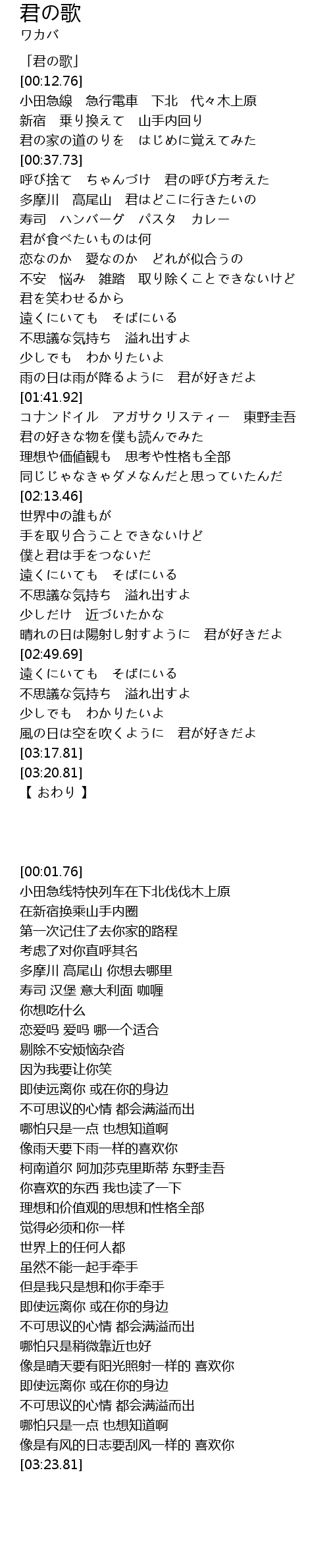 | [00:01.76] | 「君の歌」 |