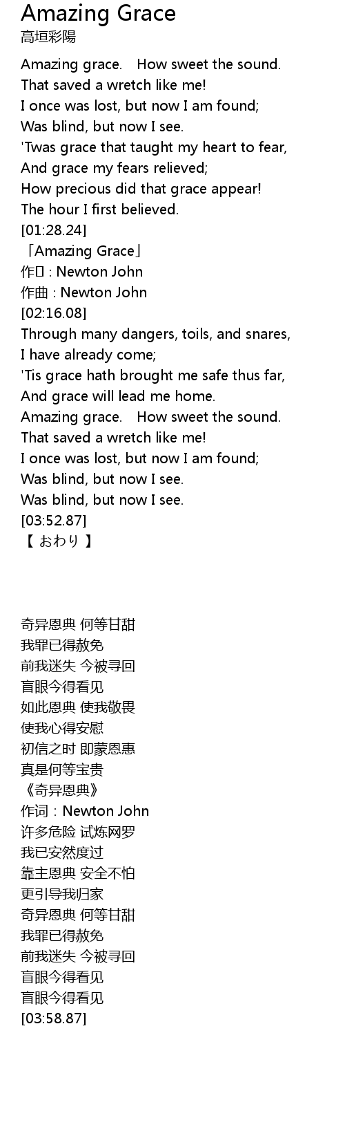 | [01:31.80] | 「Amazing Grace」 |