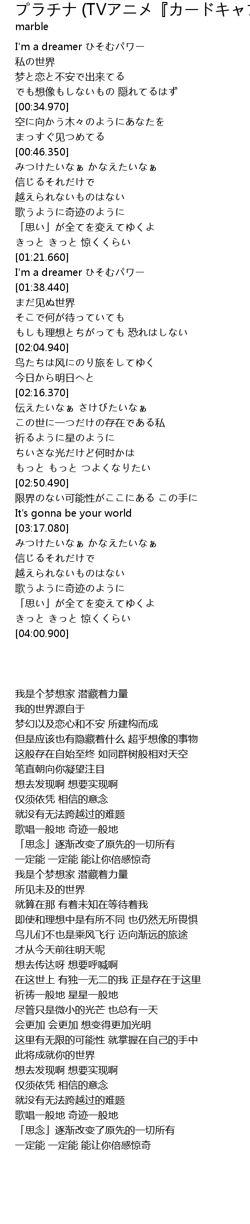 | [00:01.910] | I'm a dreamer ひそむパワー |