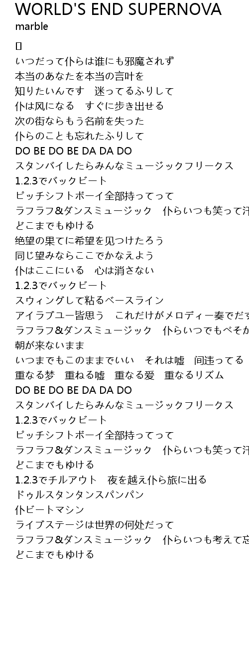 | Song | WORLD'S END SUPERNOVA |