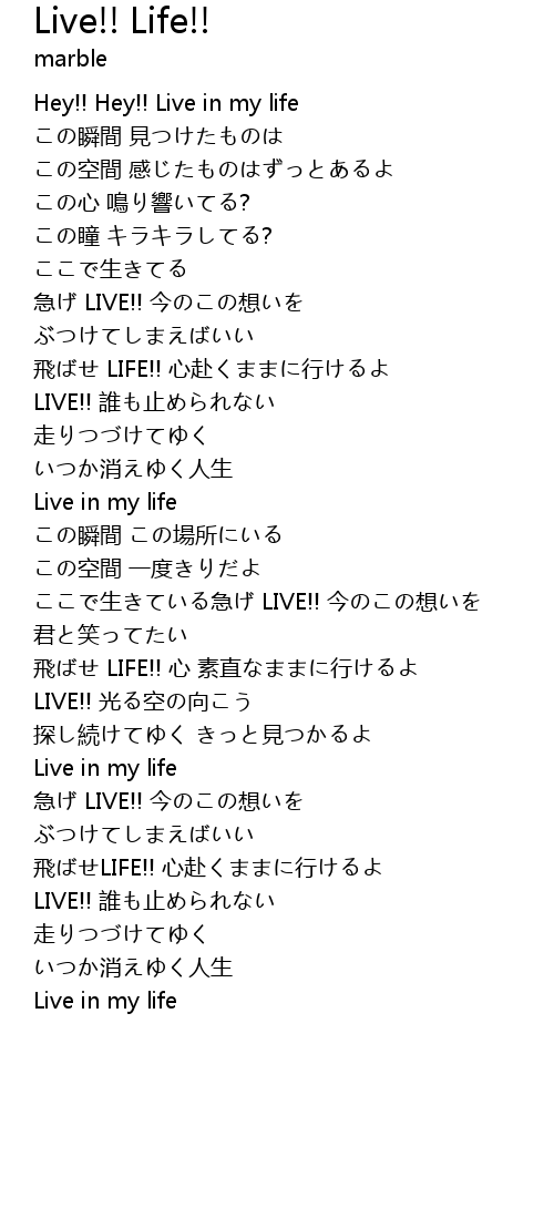 | 飛ばせ LIFE!! 心 素直なままに行けるよ | |