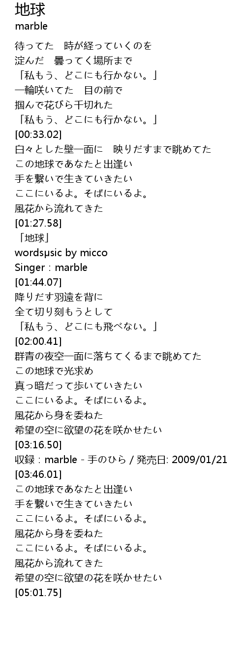 | [01:29.58] | 「地球」 |