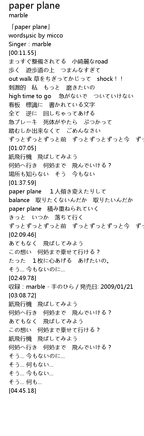 | [01:41.78] | paper plane 1人傾き変えたりして |