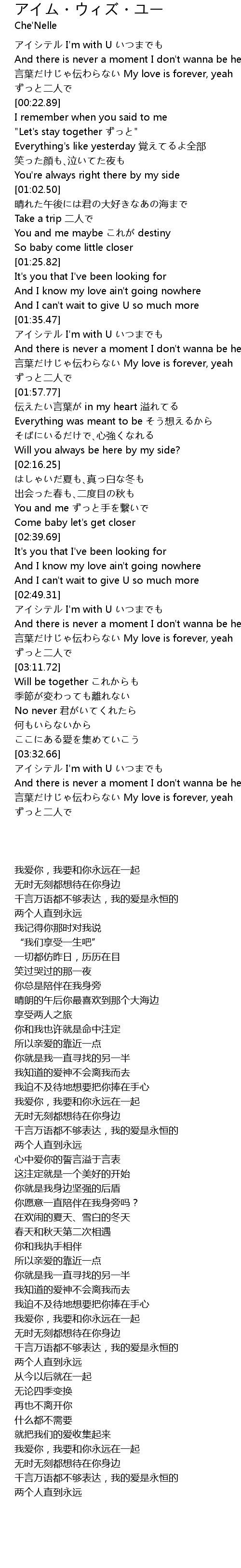| [03:34.00] | アイシテル I'm with U いつまでも |