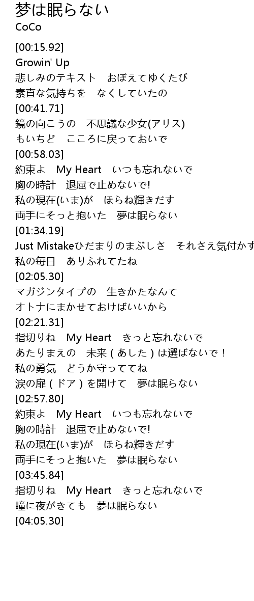 | [02:22.31] | 指切りね My Heart きっと忘れないで |