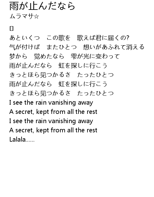 | Song | 雨が止んだなら |