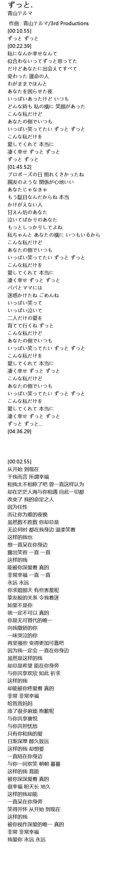 | [02:54.93] | 凄く幸せ ずっと ずっと |