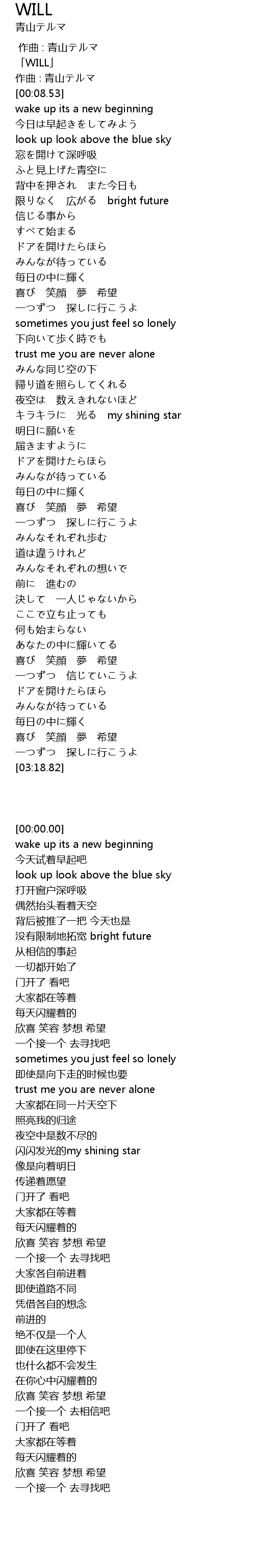 | [00:00.00] | 「WILL」 |
