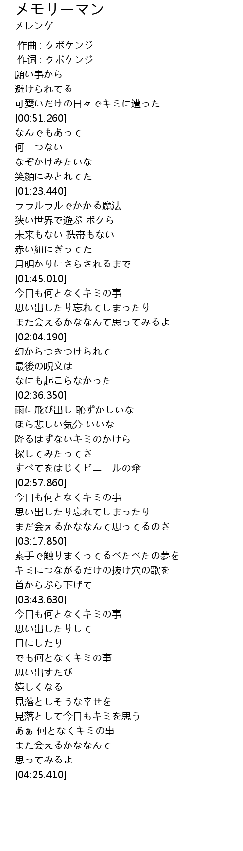 作词 : クボケンジ |