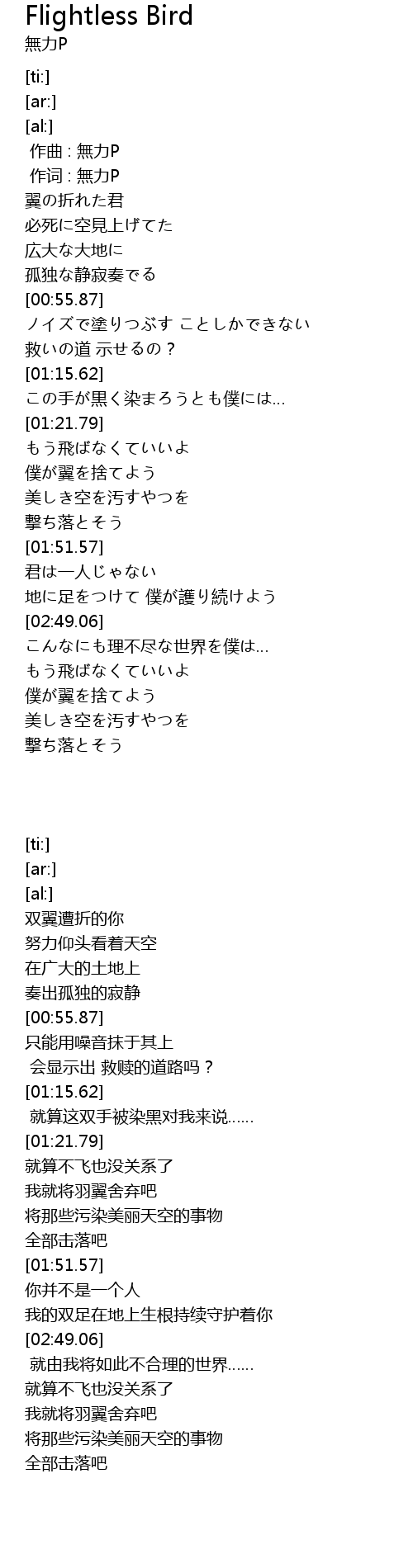 作词 : 無力P |