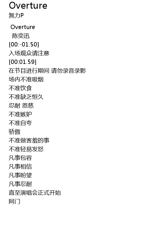 | [00:02.59] | 在节目进行期间 请勿录音录影 |