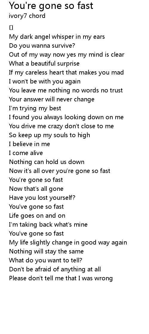 | Song | You're gone so fast |