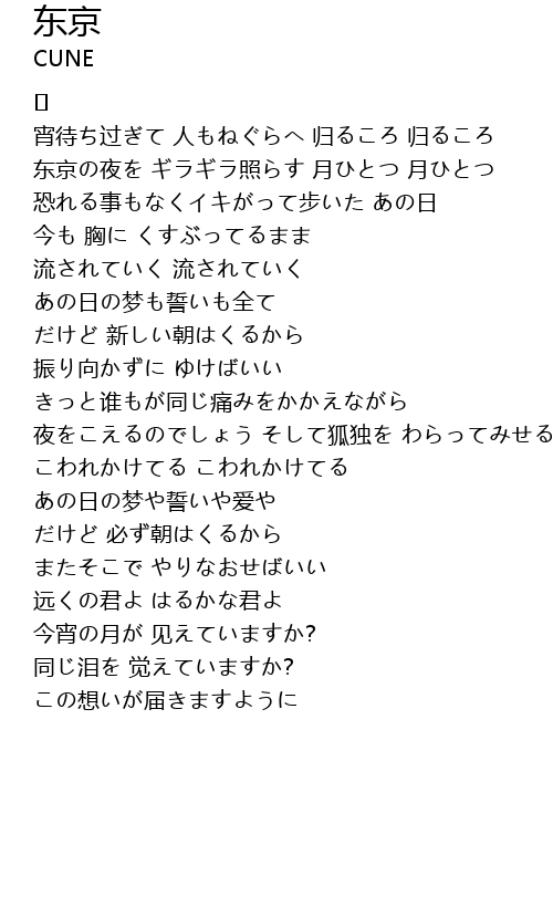 | 东京の夜を ギラギラ照らす 月ひとつ 月ひとつ | |