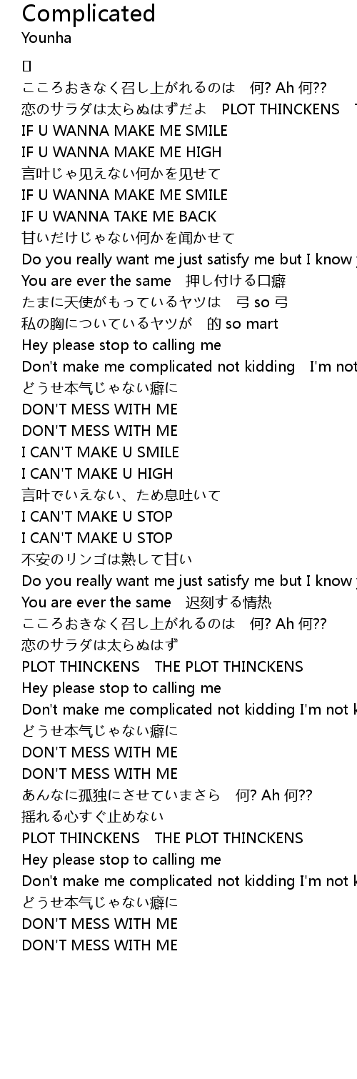 | Don' t make me complicated not kidding I' m not kidding | |