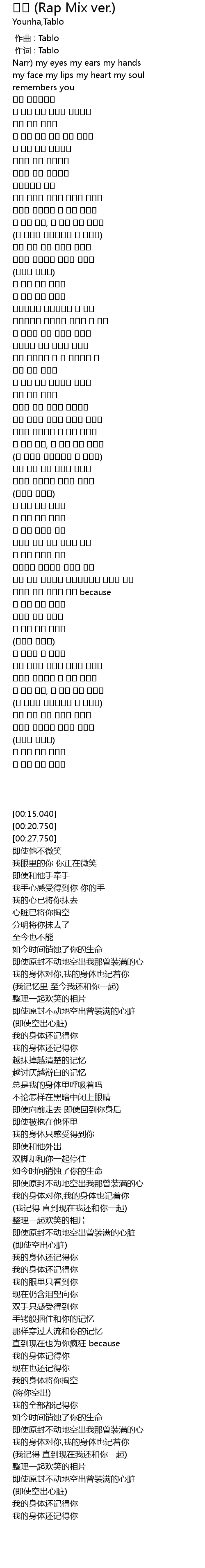 | [03:01.850] | 내 몸이 그댈 기억해 |