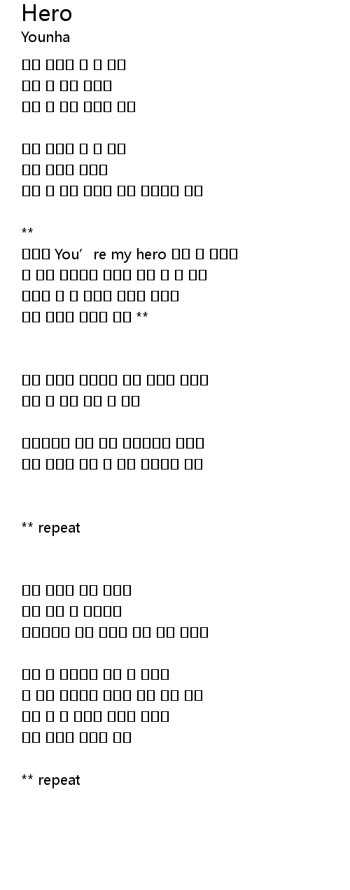 | 언제나 You’re my hero 그래 난 너뿐야 | |