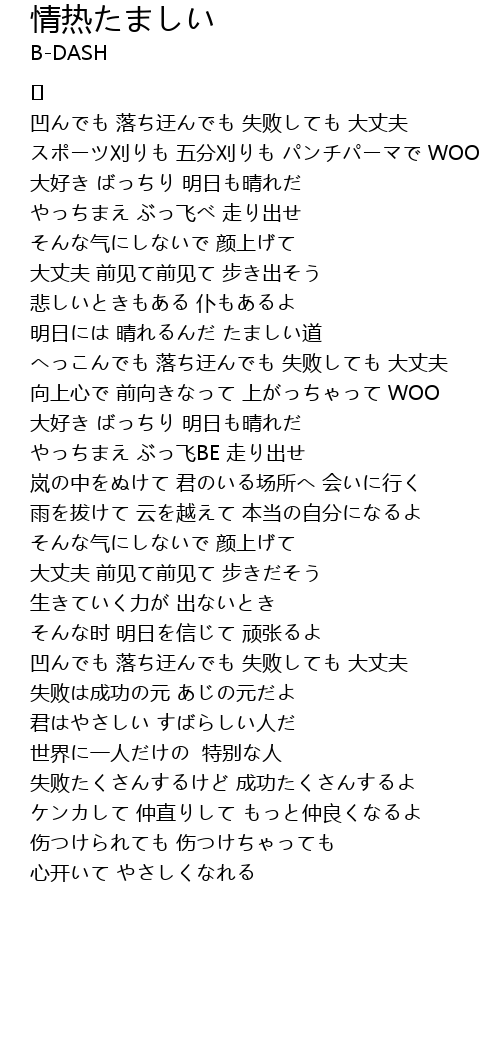 | 向上心で 前向きなって 上がっちゃって WOO | |