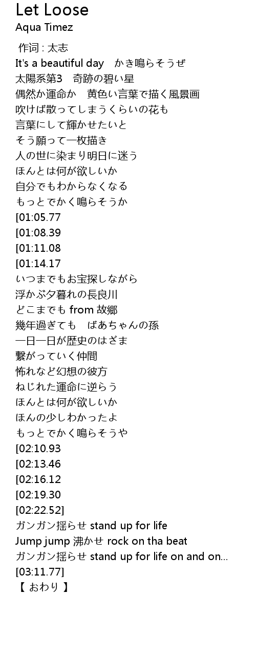 | [00:36.11] | It's a beautiful day かき鳴らそうぜ |