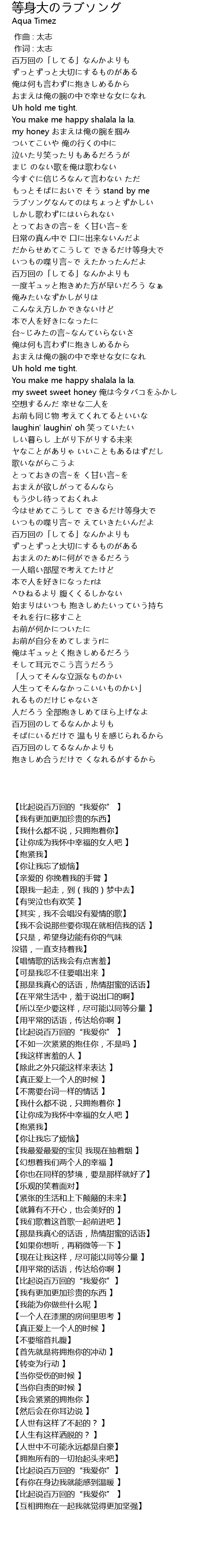 | [03:44.960] | 俺はギュッとく抱きしめるだろう |