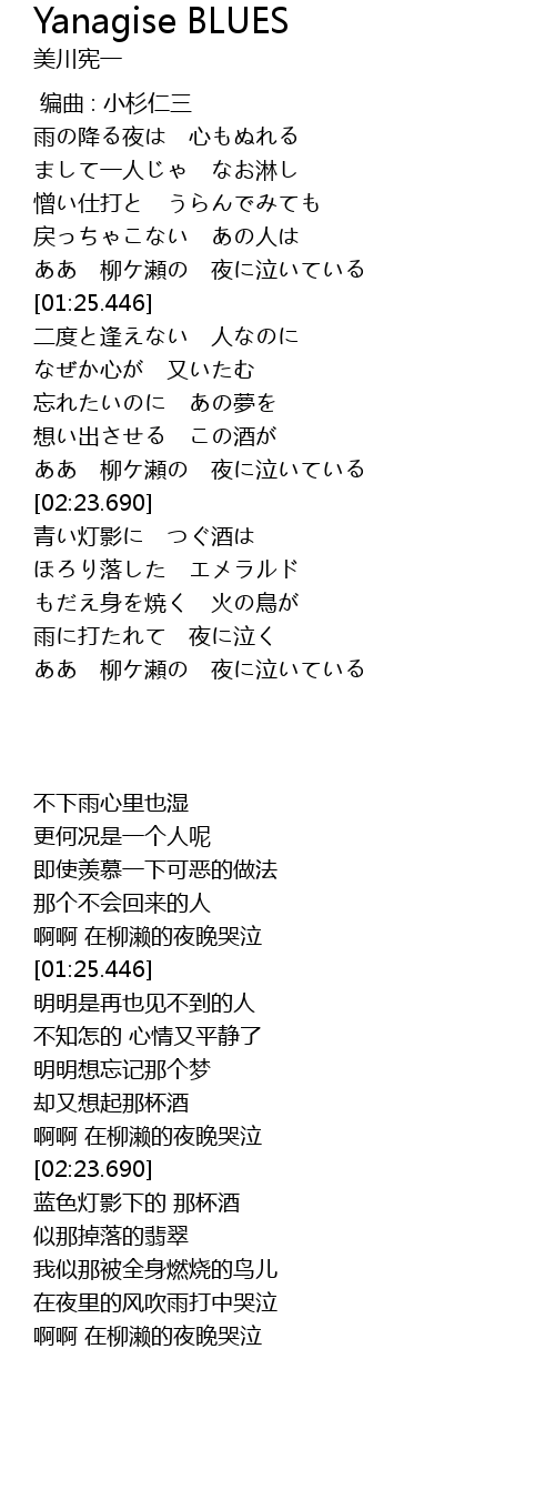 | [03:25.430] | ああ 柳ケ瀬の 夜に泣いている |