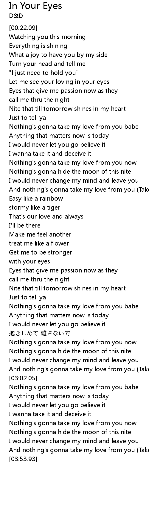 | [02:53.01] | And nothing's gonna take my love from you (Take my love) |