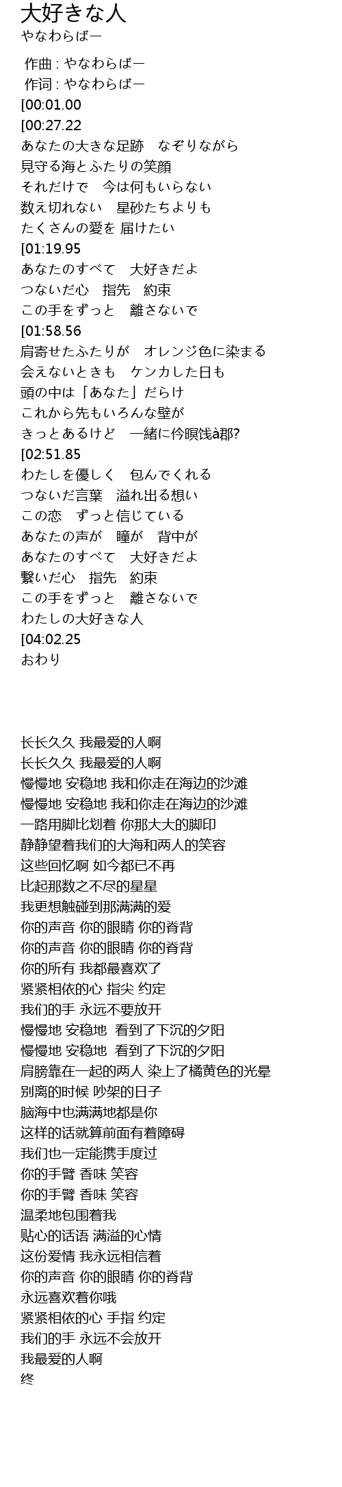 | [00:00.49][00:01.00] | ずっとずっと 私の大好きな人 |