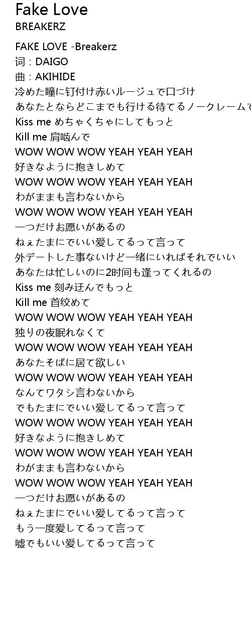 | [00:00.450] | FAKE LOVE -Breakerz |