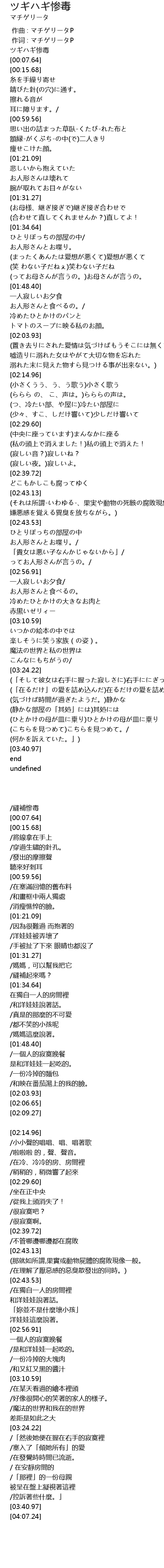| [00:06.33] | ツギハギ惨毒 |