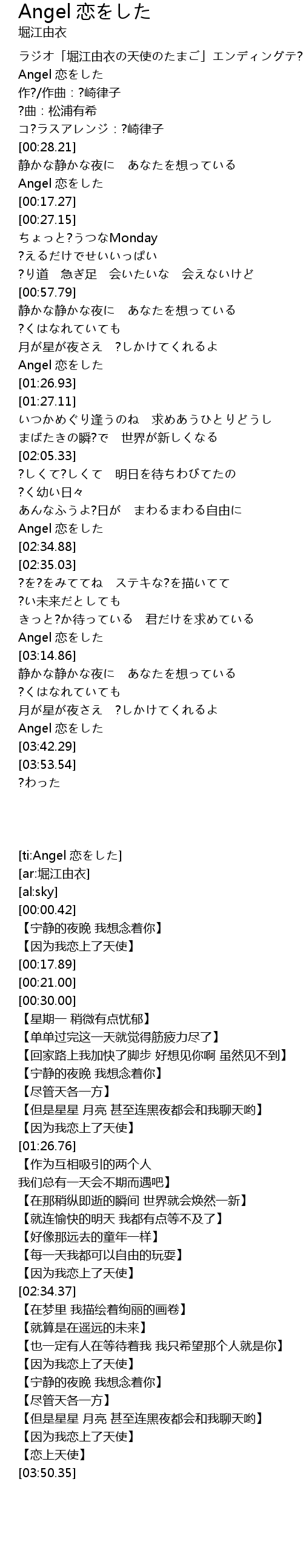 | [00:01.82] | ラジオ「堀江由衣の天使のたまご」エンディングテ?マ |