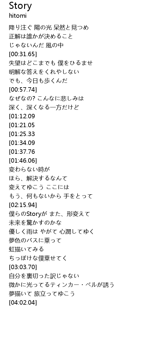 | [02:16.74] | 僕らのStoryが また、形変えて |