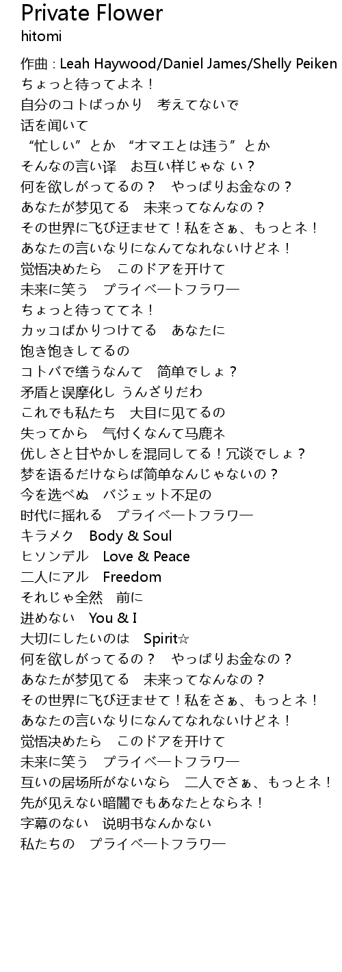 | 作曲∶Leah Haywood/Daniel James/Shelly Peiken | |