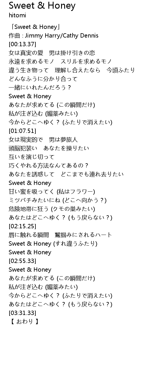 | [02:45.33] | Sweet & Honey (すれ違うふたり) |