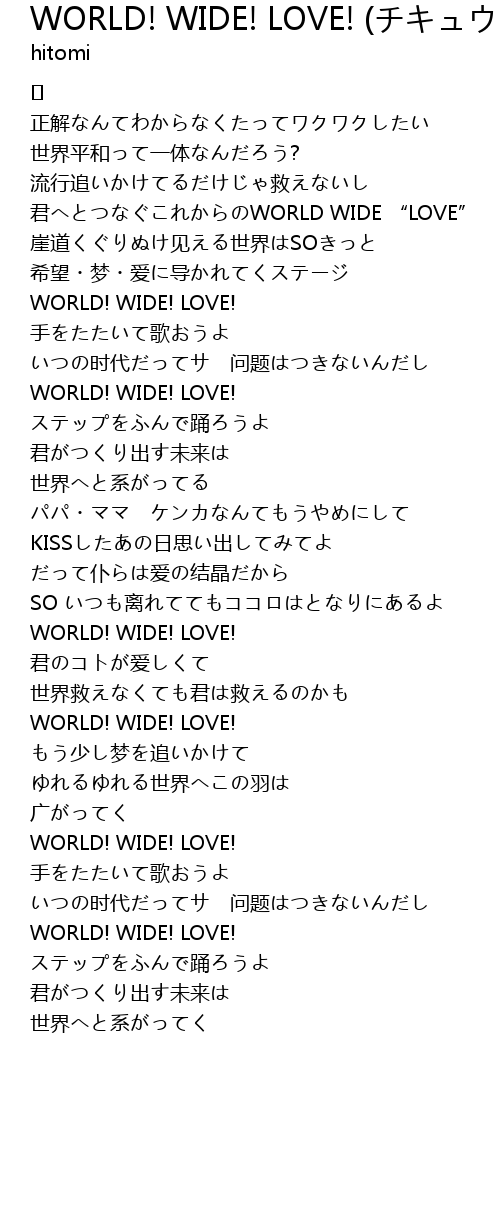 | WORLD! WIDE! LOVE! | |