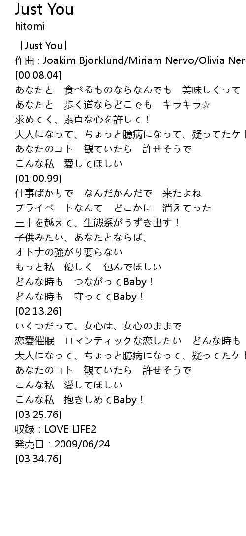 | [03:28.76] | 収録:LOVE LIFE2 |