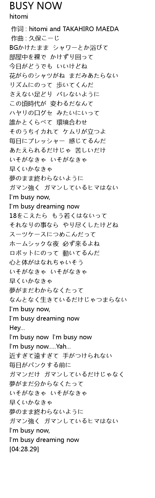 BUSY NOW Lyrics