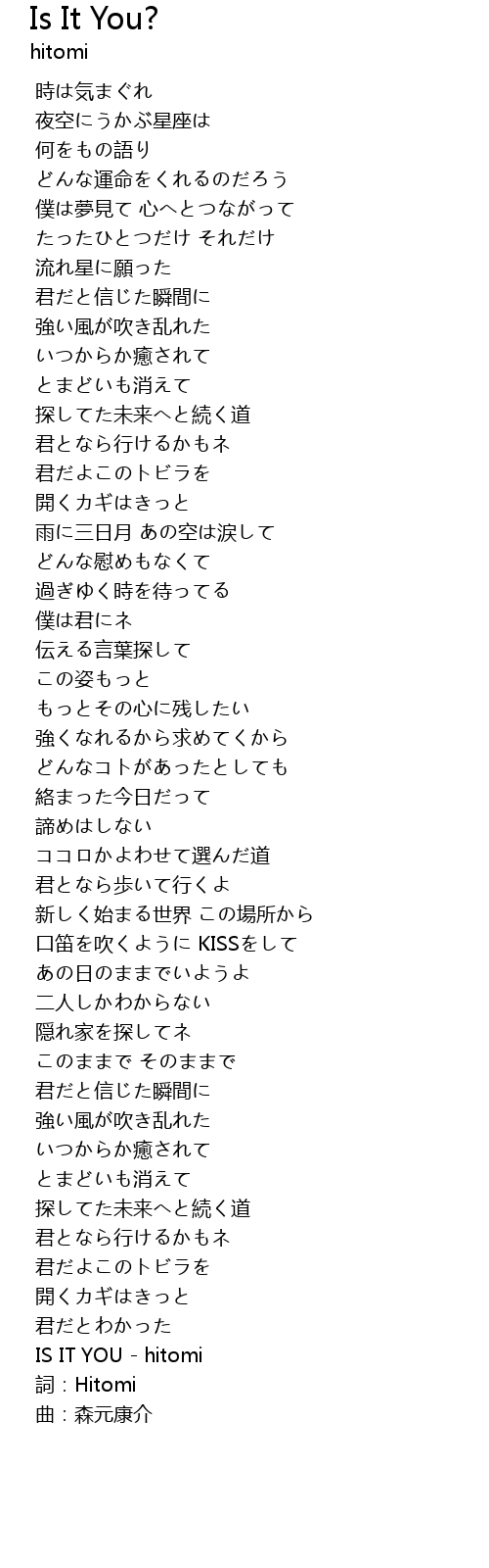 | [04:38.800] | IS IT YOU - hitomi |