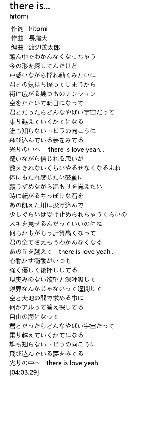 | [03:46.39] | 光りの中へ there is love yeah... |