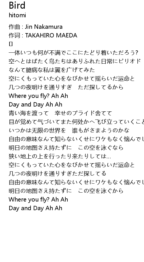 | 目が觉めて气づいてまた何处かへ飞び立っていくことを | |