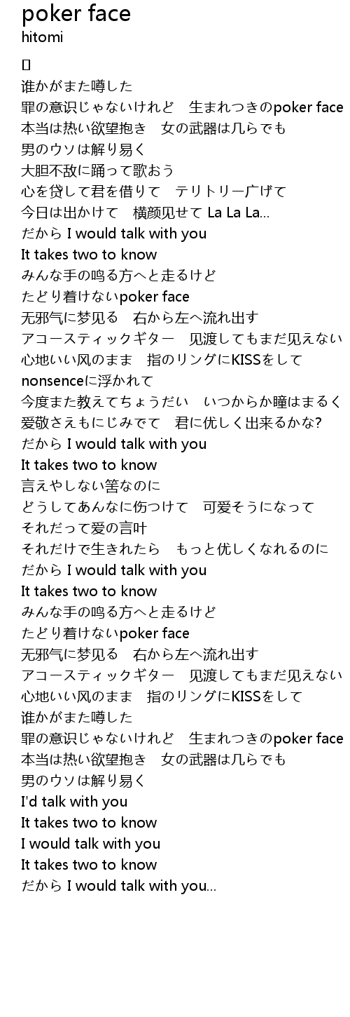 | 罪の意识じゃないけれど 生まれつきのpoker face | |