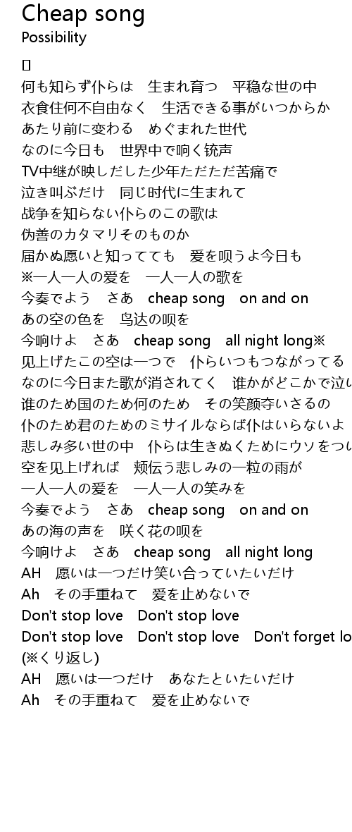 | Don' t stop love Don' t stop love Don' t forget love | |