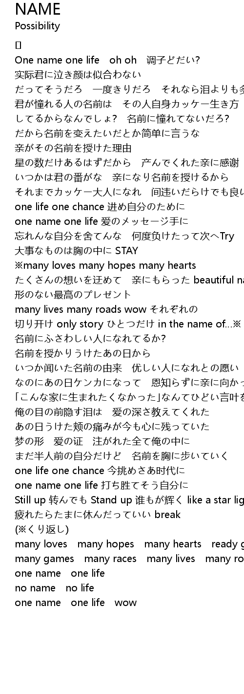 | One name one life oh oh 调子どだい? | |