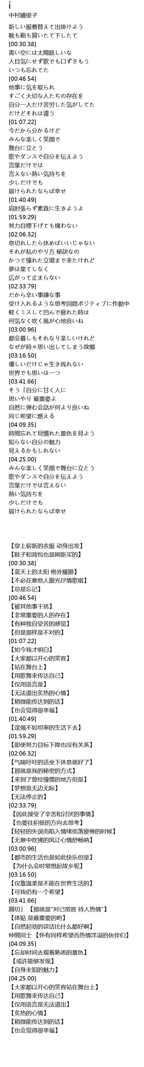 | [04:37.86] | みんな楽しく笑顔で舞台に立とう |