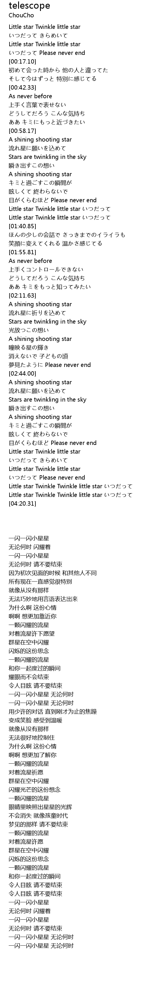 | [04:14.81] | Little star Twinkle Twinkle little star |