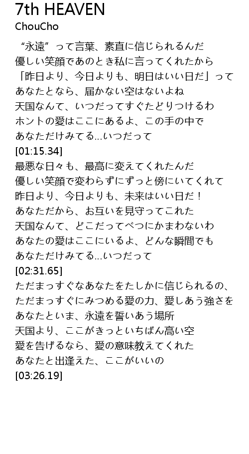 | [02:59.76] | 天国より、ここがきっといちばん高い空 |