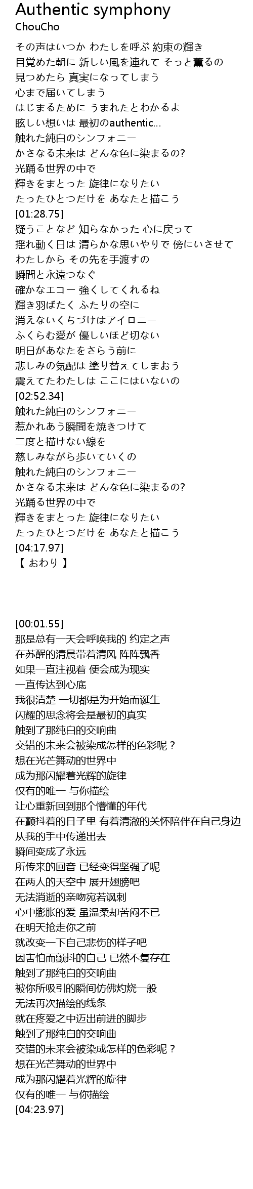| [03:24.15] | 触れた純白のシンフォニー |