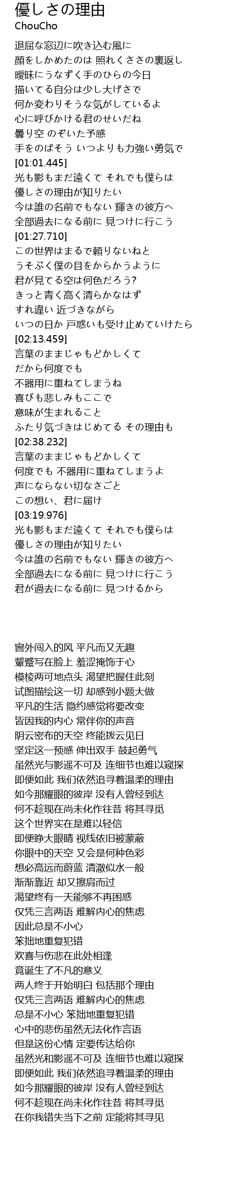 | [01:09.114] | 優しさの理由が知りたい |