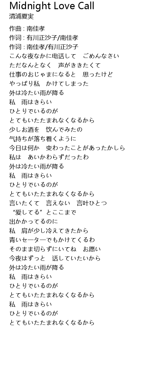 | 作词∶南佳孝/有川正沙子 | |