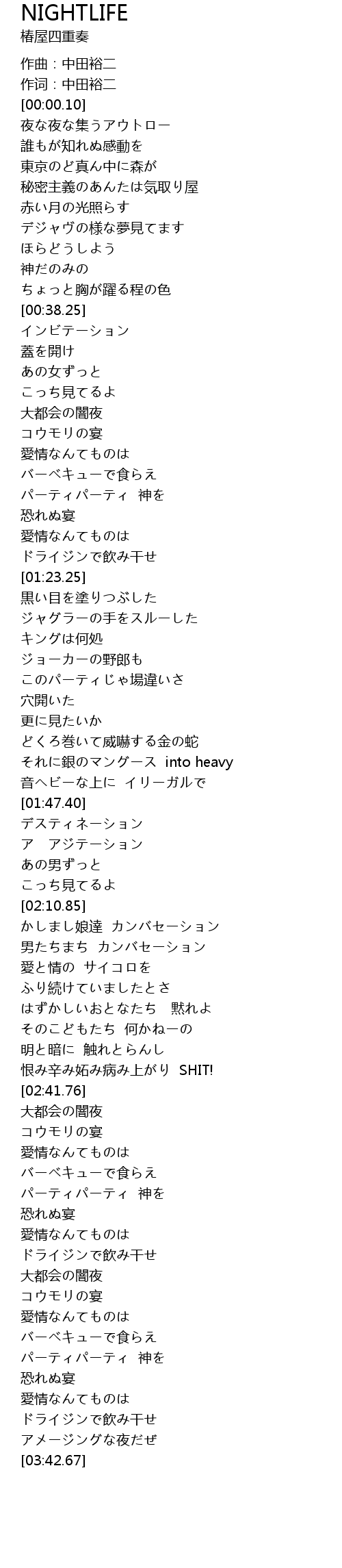 | [00:16.78] | 夜な夜な集うアウトロー |