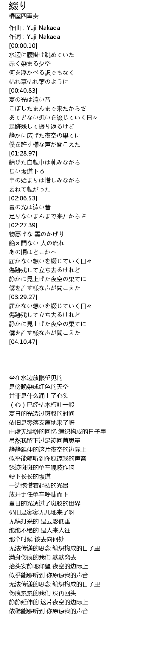 | [00:59.02] | あてどない想いを綴じていく日々 |
