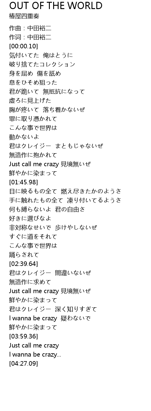 | [01:27.98] | 君はクレイジー まともじゃないぜ |
